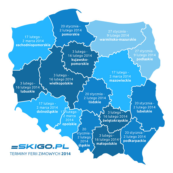 Wielkimi krokami zbliża się wyczekiwana przez sympatyków białego szaleństwa zima. Od kilku lat poszczególne województwa rozpoczynają ferie zimowe w różnych terminach. Tak będzie i w tym sezonie. Jednak czy wiemy kto jako pierwszy wybierze się na długo wyczekiwany odpoczynek, a które województwa będą musiały poczekać troszkę dłużej ?