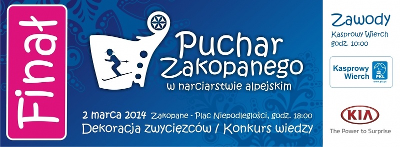 Już w najbliższą niedzielę 2 marca zapraszamy na Kasprowy Wierch, gdzie odbędzie się finał Pucharu Zakopanego w narciarstwie alpejskim. Nie może Was zabraknąć. Puchar Zakopanego to cykl czterech imprez, które odbyły się jak dotąd 14 grudnia na Polanie Szymoszkowej, 9 lutego na Nosalu oraz 16 lutego na Harendzie.